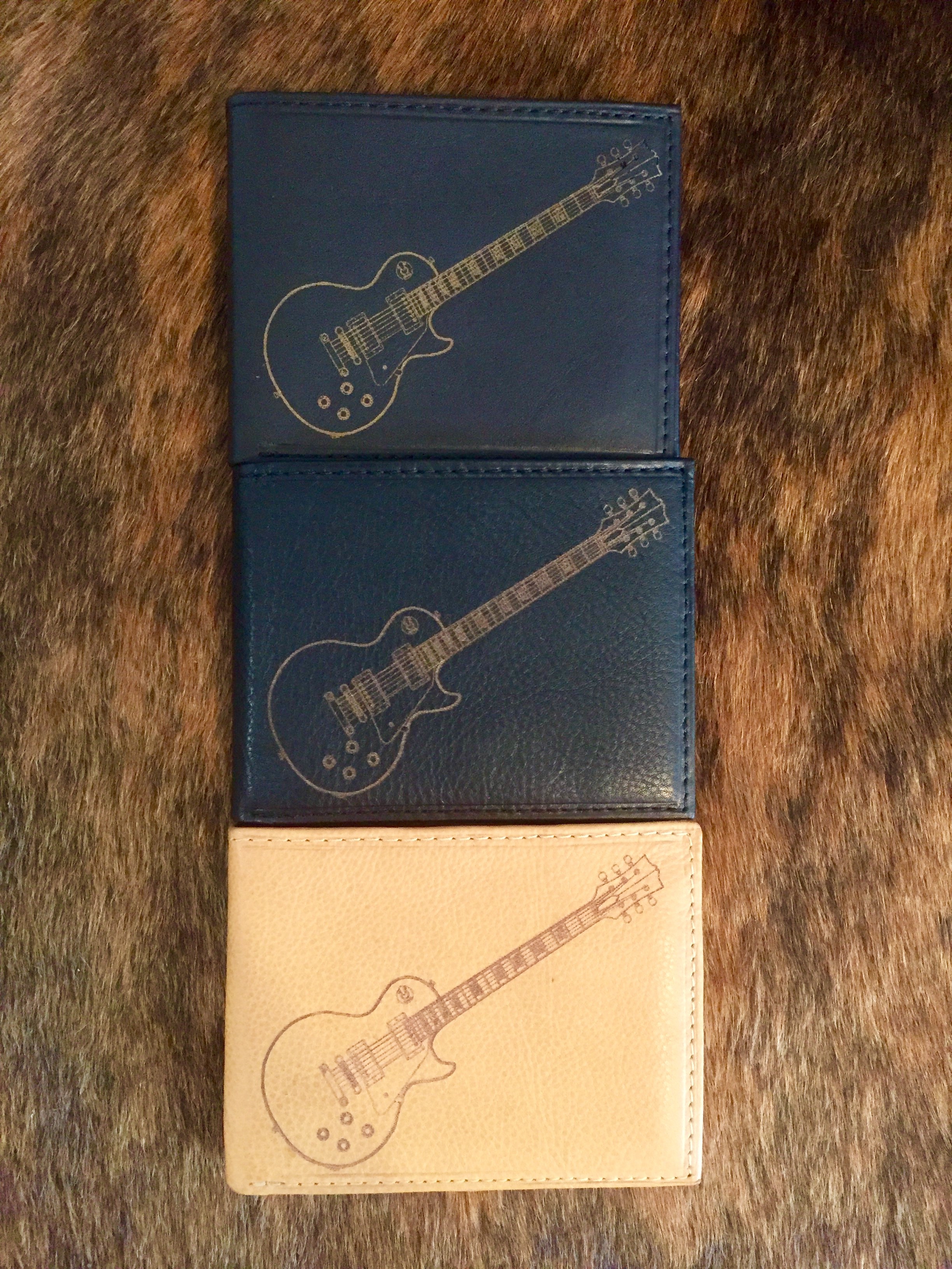 A hand crafted leather wallet. Includes card slots, ID window, double pocket for cash, and a laser engraved design on it.